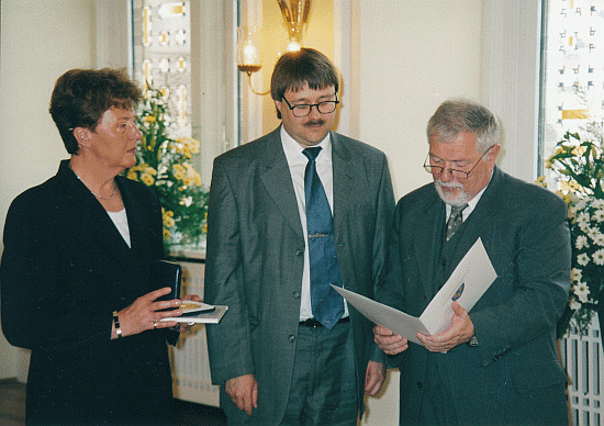 Der Ur-Ur-Ur-Enkel des Gründers Rainer Schnatz nimmt für die Familie die Stadtplakette in Gold entgegen.